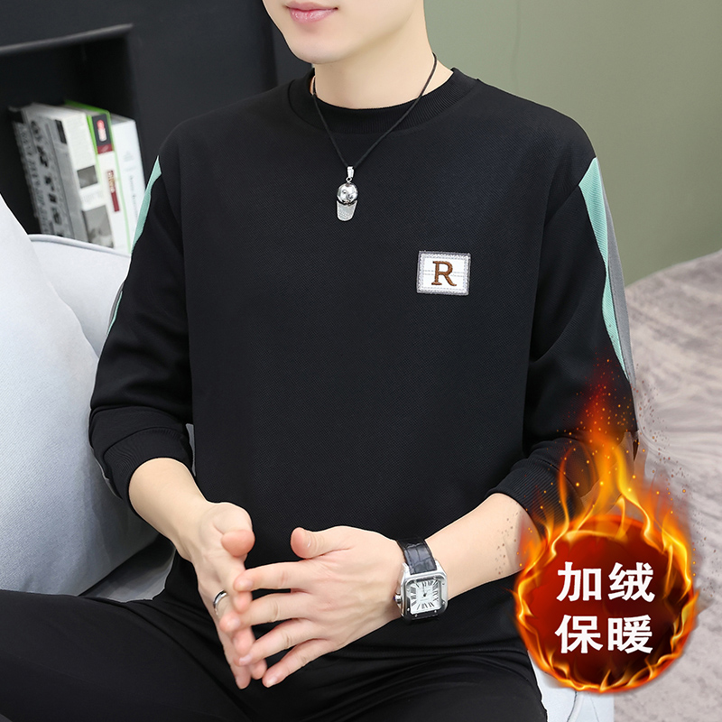 流行加绒卫衣男秋冬款拼接上衣潮牌宽松保暖打底衫春秋季单穿外套