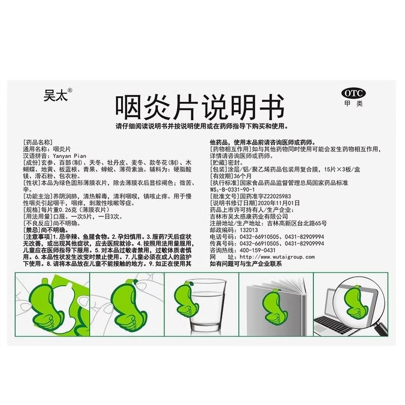 吴太 咽炎片 0.26g*45片/盒 慢性咽炎咽干咽痒刺激性咳嗽清热解毒