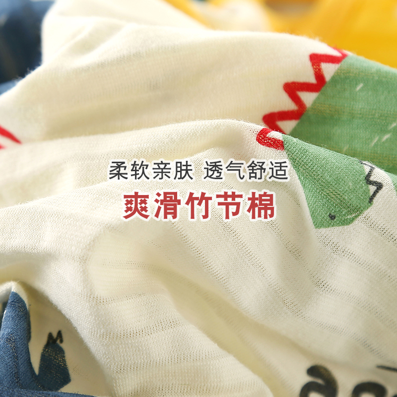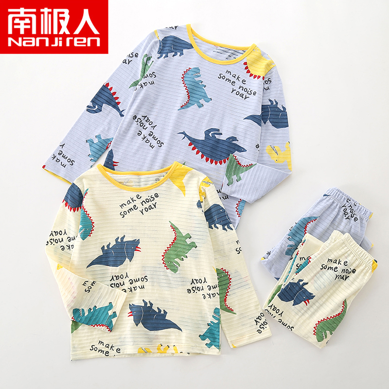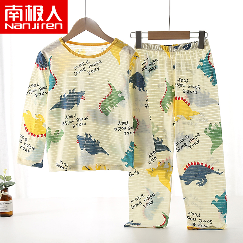 南极人男童纯棉薄款长袖睡衣睡裤套装儿童竹节棉家居服夏季空调服