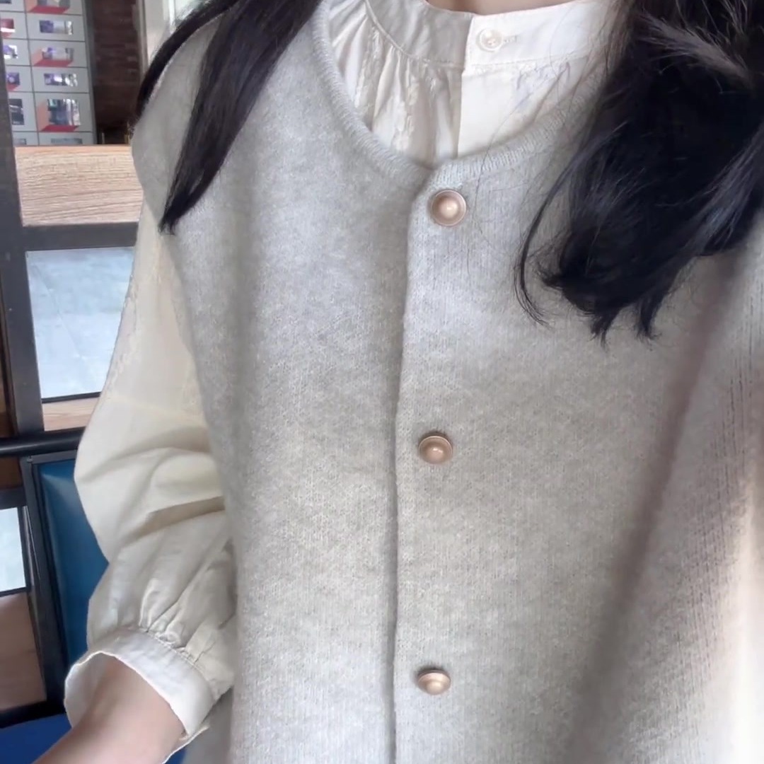 韩系早秋新款宽松百搭刺绣衬衣叠穿针织坎肩马甲两件套ins秋季女