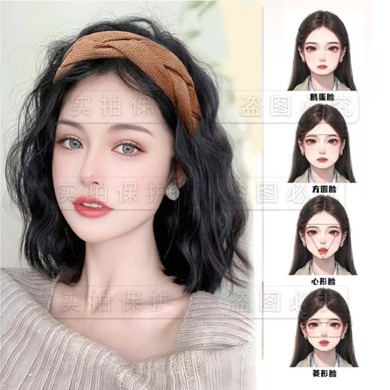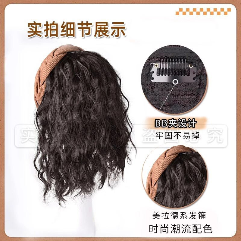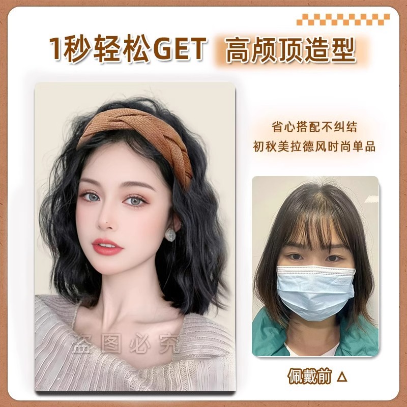 高颅顶发箍假发仿真发羊毛卷一体补发块女自然短卷发半头套发丝