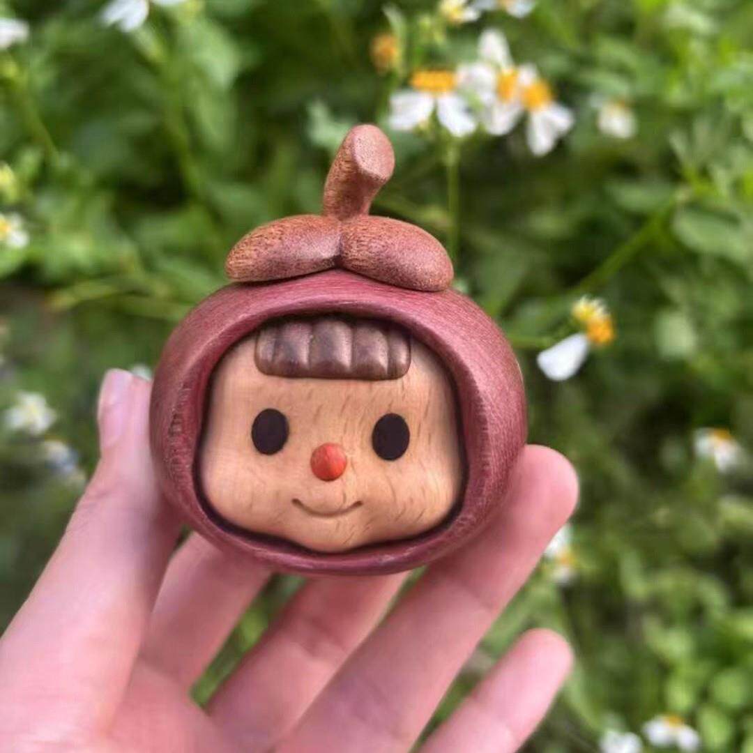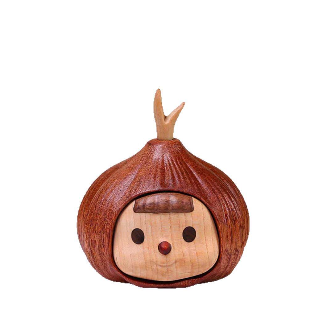 实木雕刻蒜头妹山竹多妹创意家居办公桌面车载摆件装饰品日常礼物