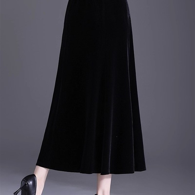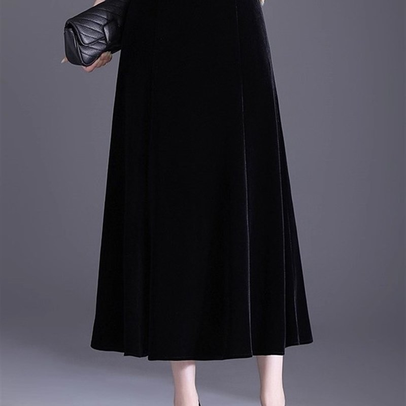 黑色丝绒半身裙女2025秋季新款高腰显瘦中长款A字裙气质遮胯伞裙