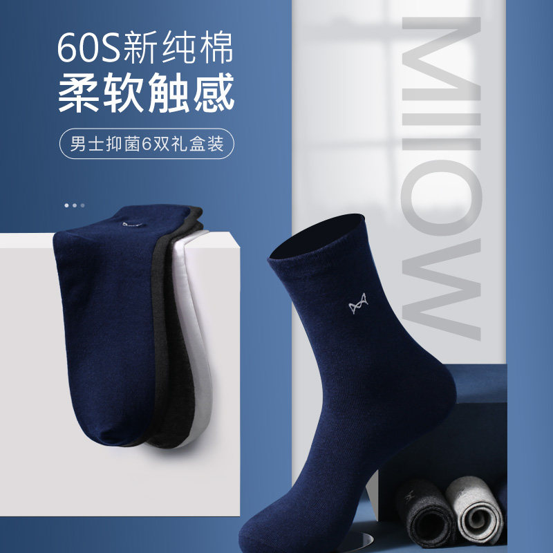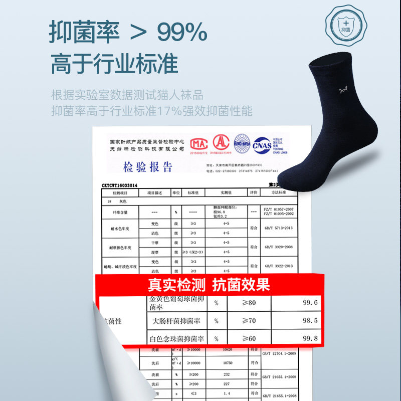 猫人袜子男士纯棉中筒袜秋季黑色透气男袜秋冬全棉防臭吸汗长袜男