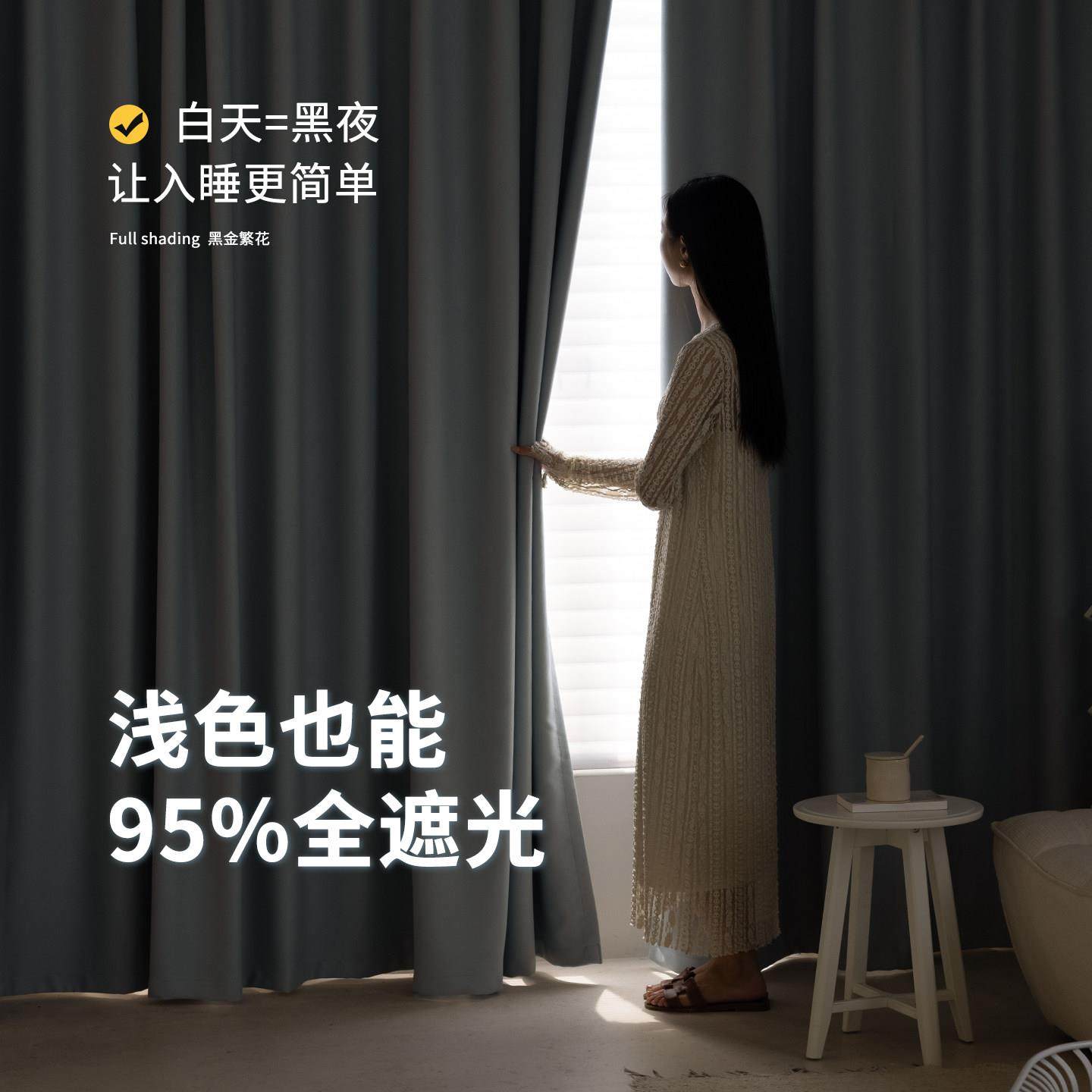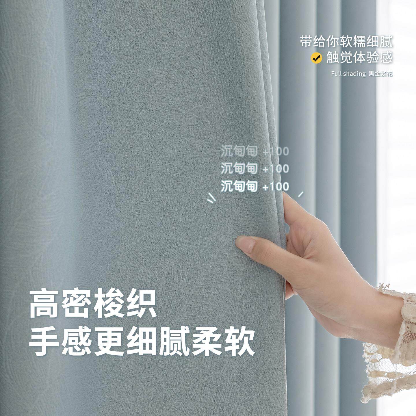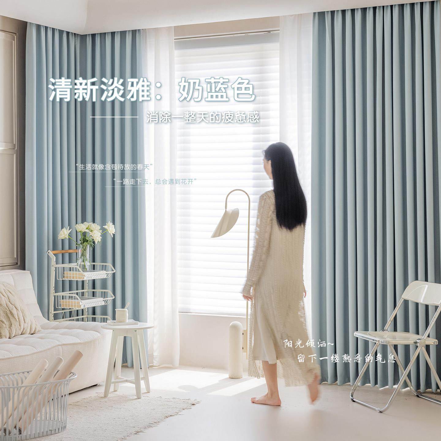 卧室雪尼尔遮光窗帘轻简约客厅阳台飘窗2024新款简约现代遮阳防晒