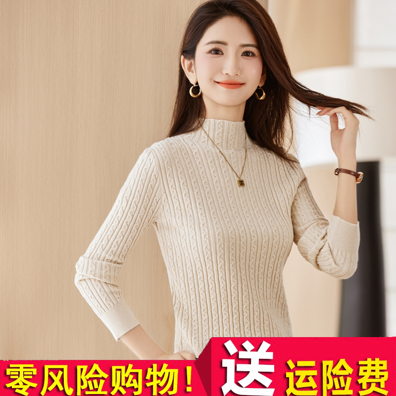 半高领套头短款毛衣女秋冬2025新款修身小个子中领内搭针织打底衫