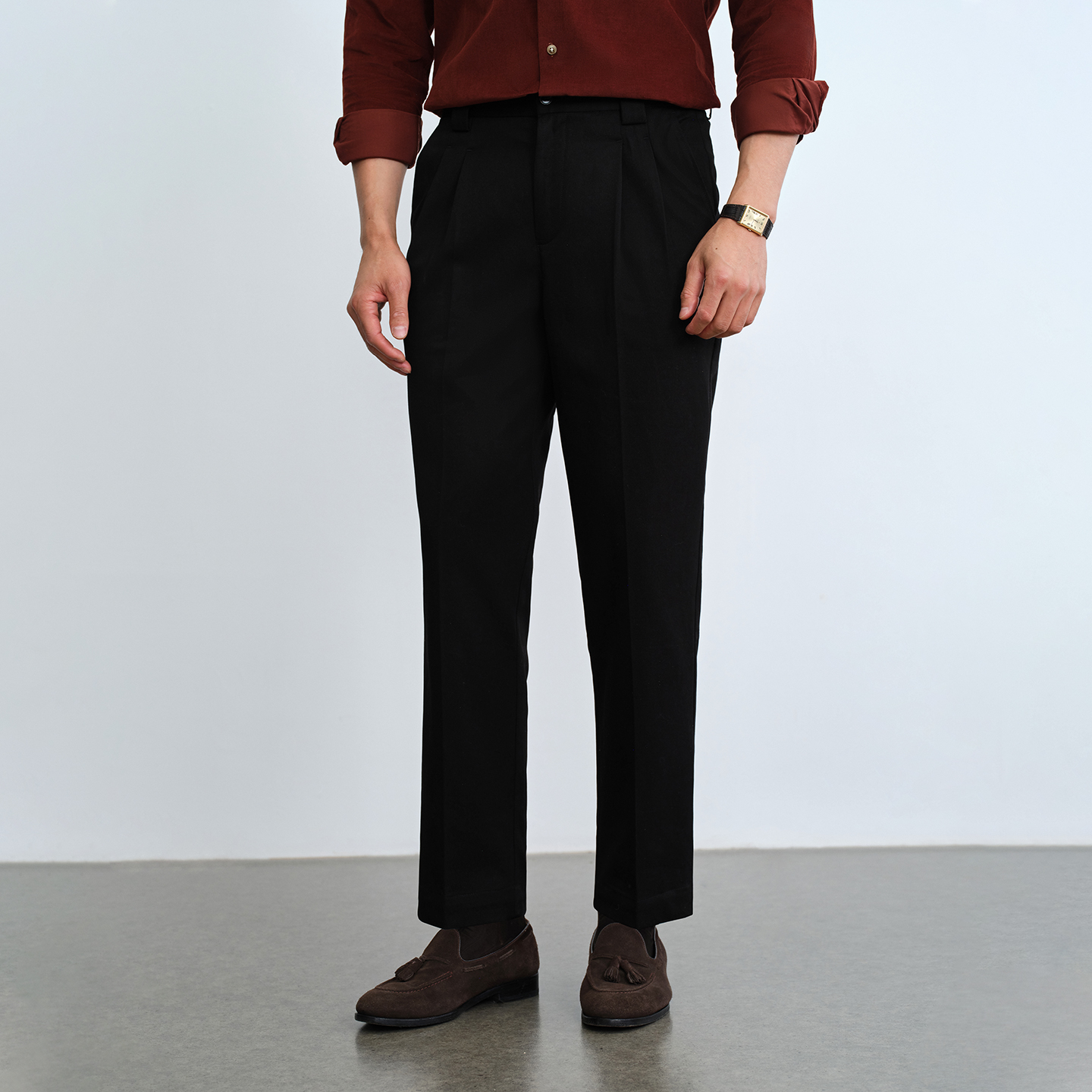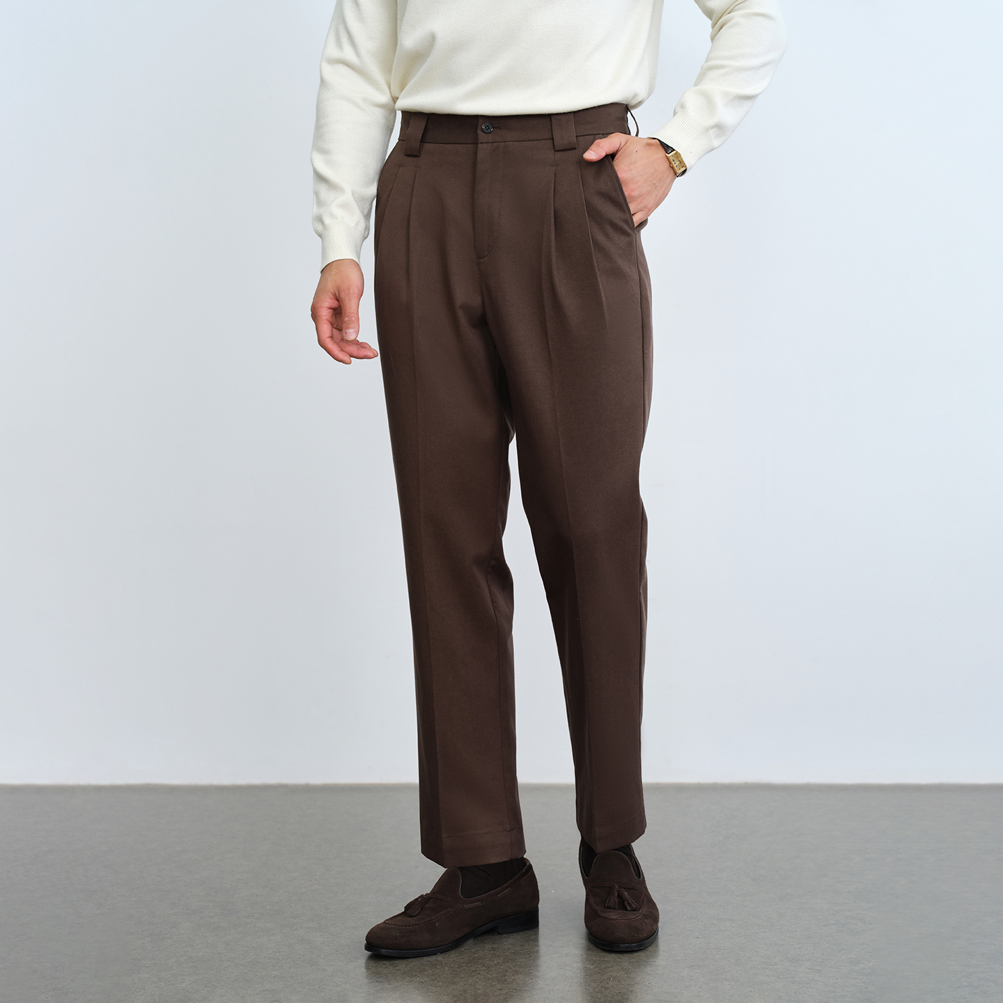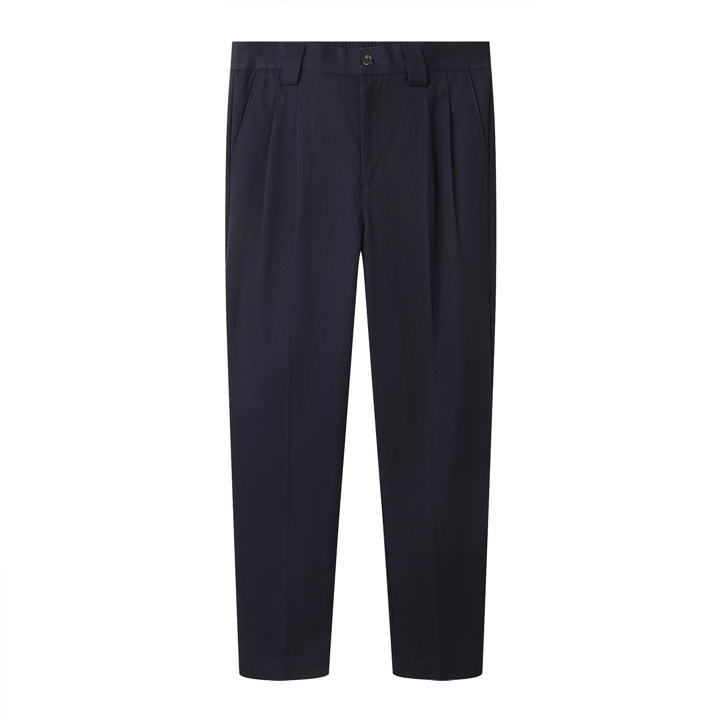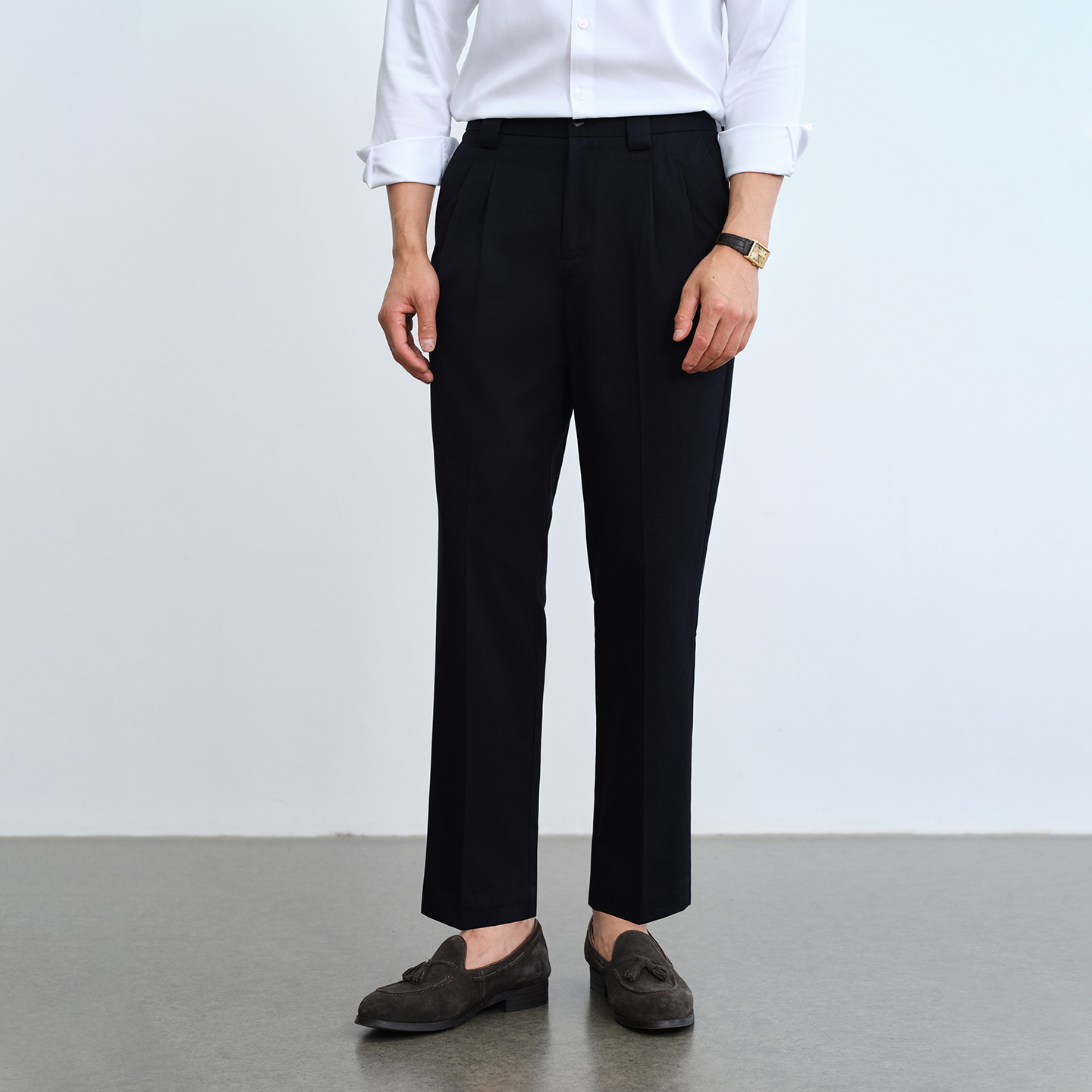 秋季老钱绅士 松紧腰设计 白色休闲裤男士百搭商务双褶长裤男款