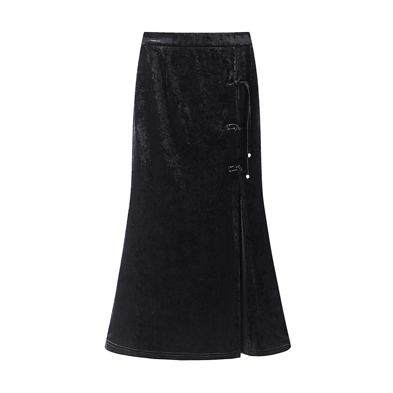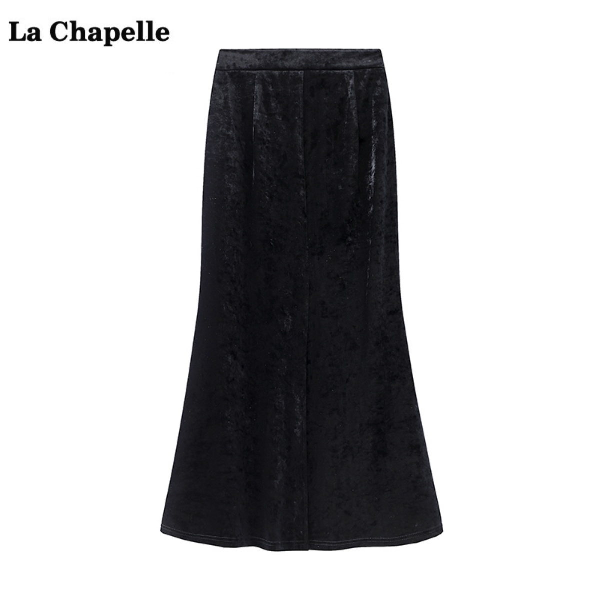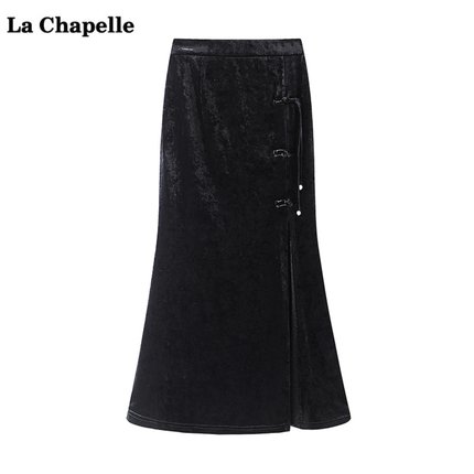 拉夏贝尔/La Chapelle新中式丝绒半身裙女秋冬季新款中长款鱼尾裙