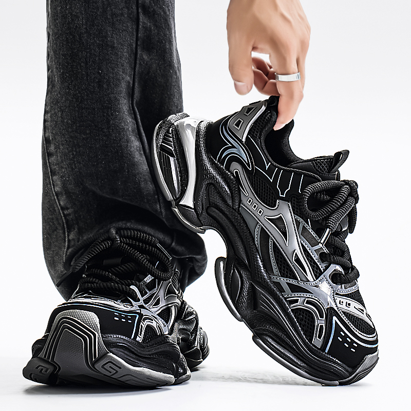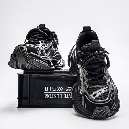 黑武士男鞋秋季软底防滑学生青少年运动跑步休闲旅游增高老爹潮鞋