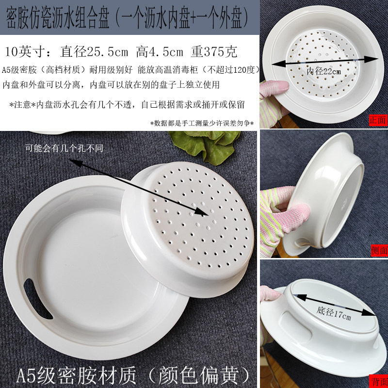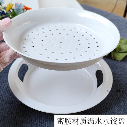 水饺盘双层密胺商用圆形沥水10英寸仿瓷耐摔盘子水果盘饺子餐具碟
