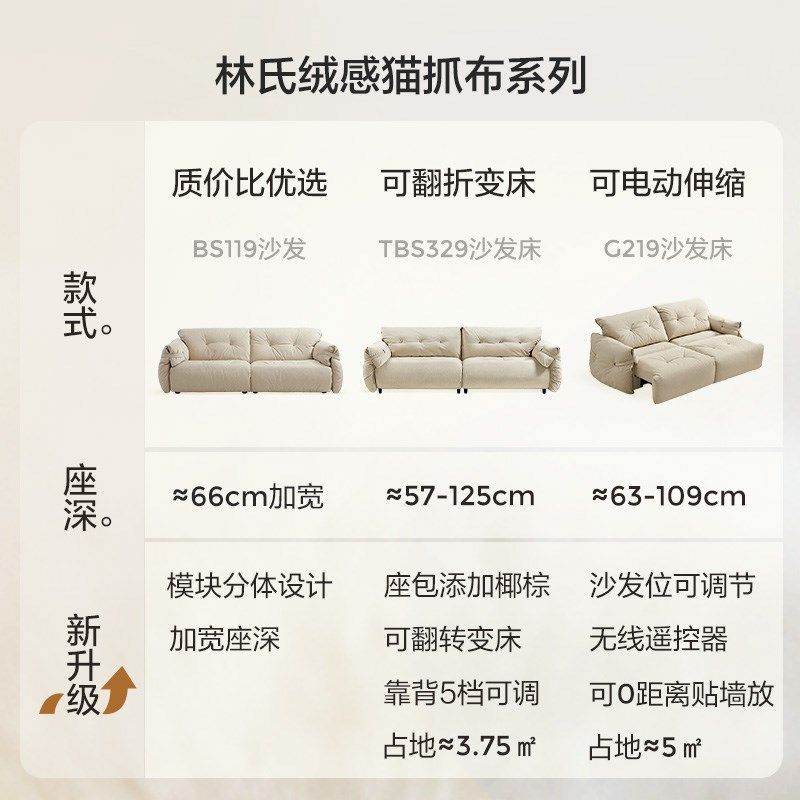林氏家居奶油风云朵沙发客厅2024新款小户型猫抓布艺家具林氏木业
