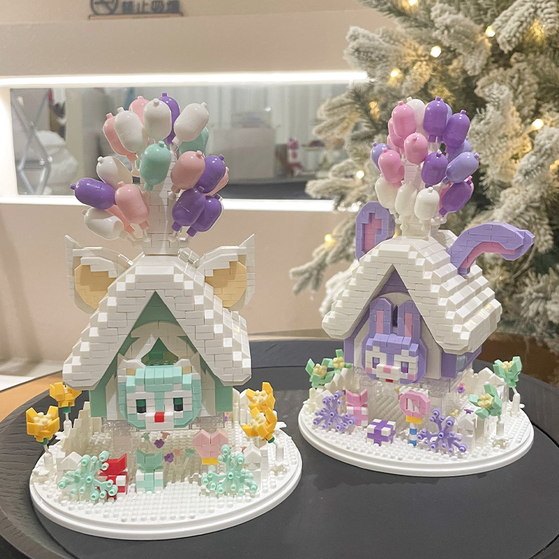 玲娜贝儿迪士尼城堡积木女生系列草莓熊气球屋摆件男女孩拼装玩具