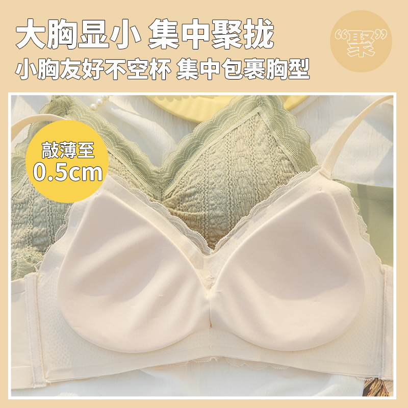 内衣女聚拢小胸薄款大胸显小少女学生运动无钢圈收副乳文胸罩套装