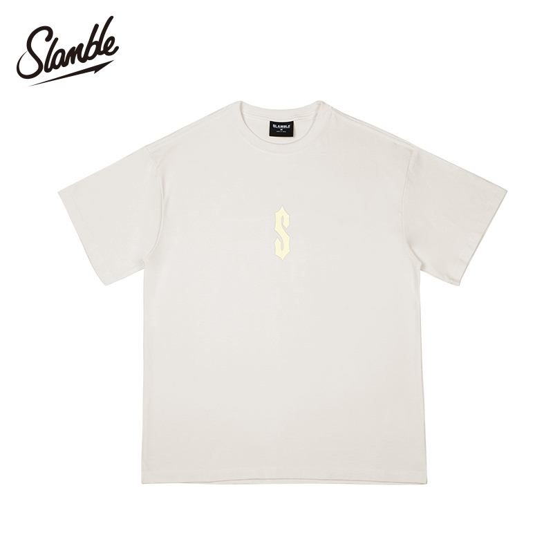 SLAMBLE新款夏季简约字母印花短袖t恤男女纯棉潮流宽松百搭圆领