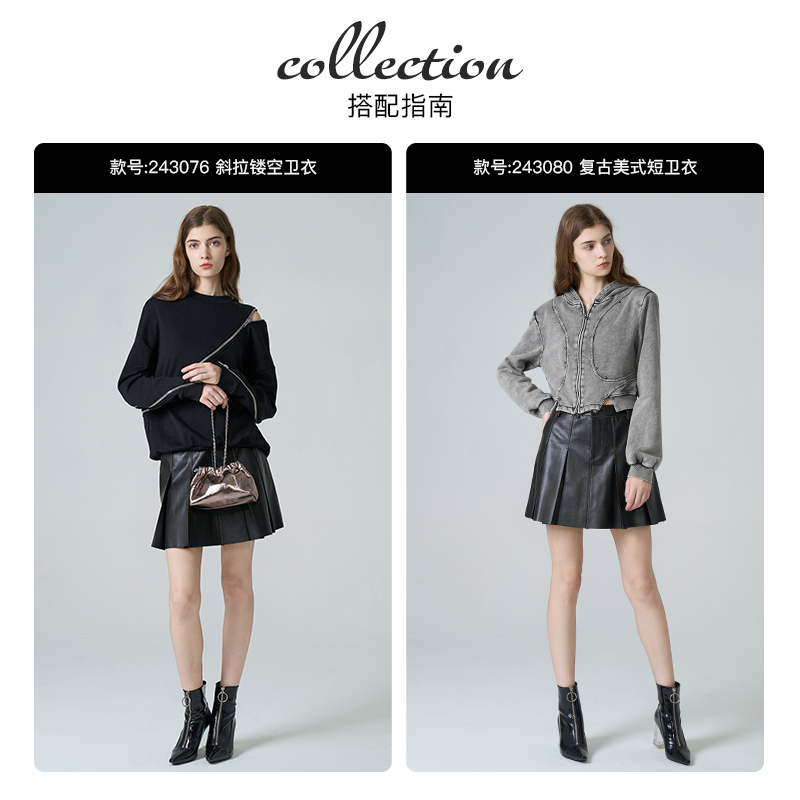 天谜皮裙百褶时尚百搭A版半身裙短裙2024秋季新品女装TMi243079