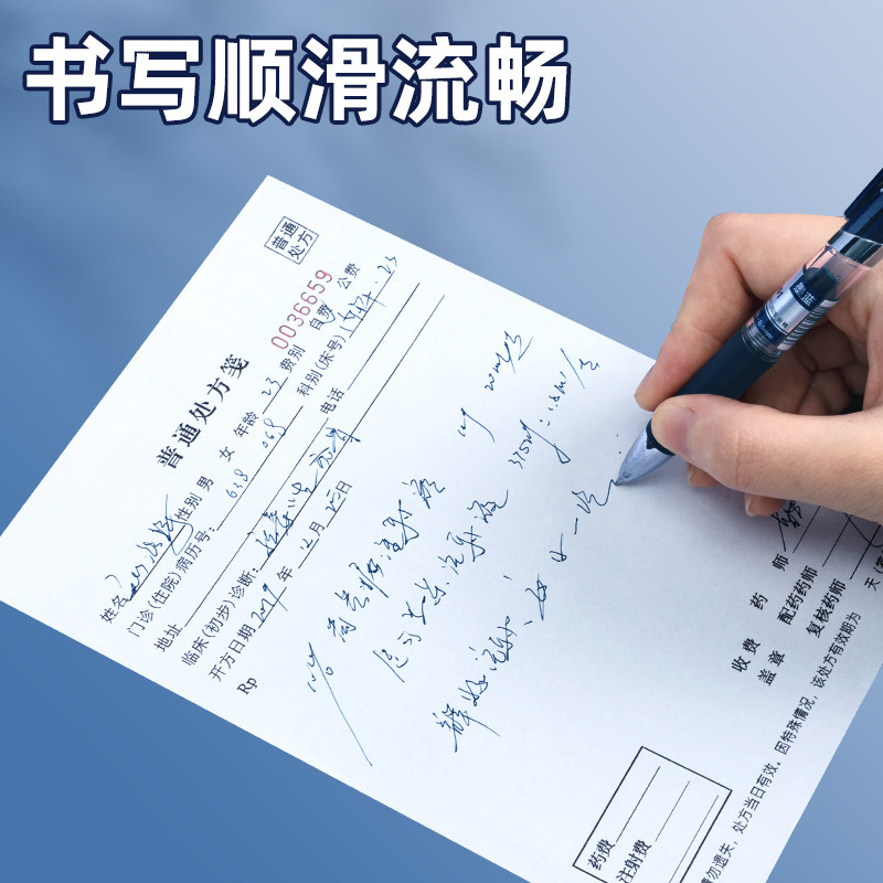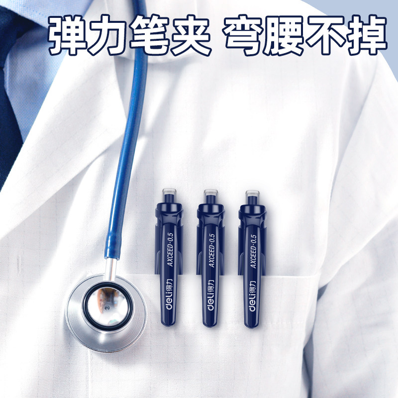 得力墨蓝笔医护专用蓝笔墨蓝笔芯按动水笔墨蓝色中性笔墨蓝医护处方笔墨兰护士医生按动签字笔学生医用S01