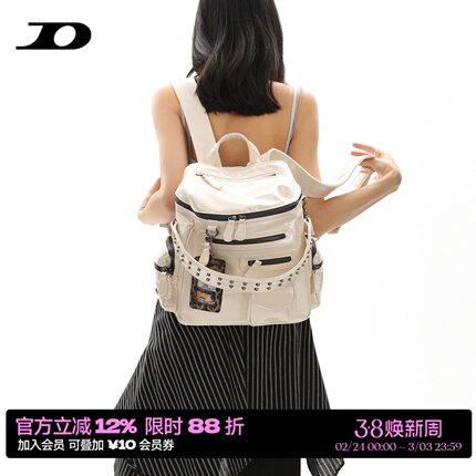 简着/ 原创珠光白银里斯林肯多口袋铆钉大容量单肩双肩包机车背包