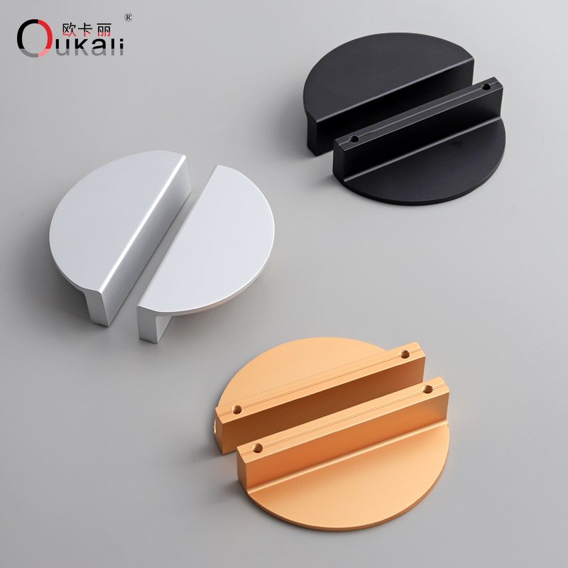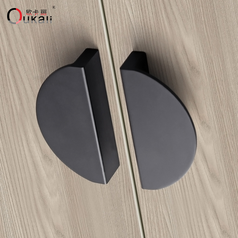 现代简约半圆对装抽屉拉手美式黑色家具橱柜衣柜门把手柜子门手柄