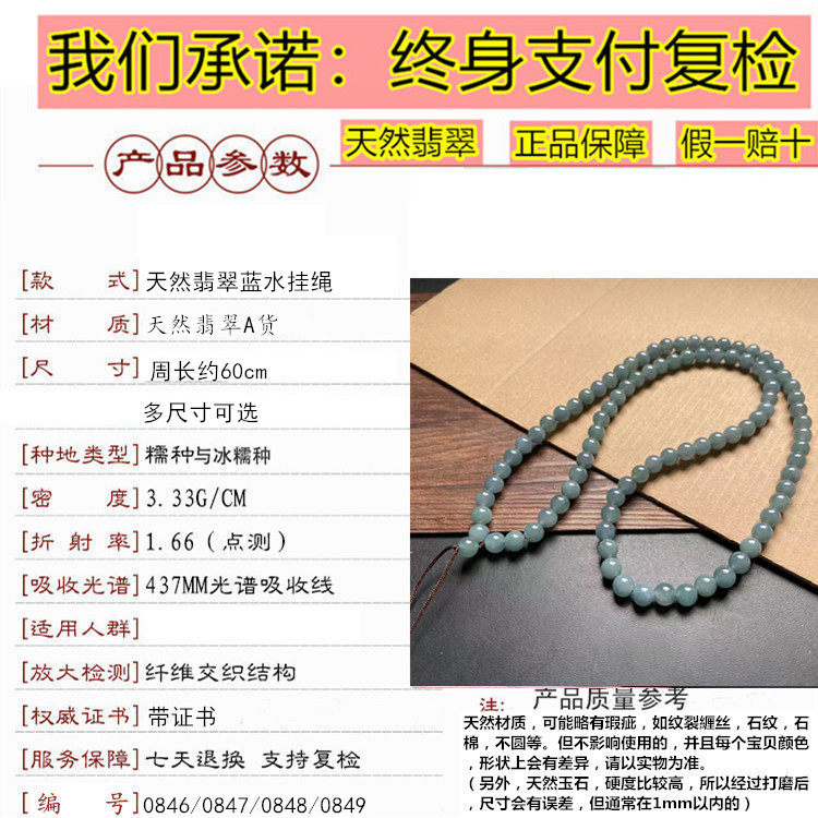 送证书 全珠链老坑蓝水天然翡翠A货挂绳项链挂件吊坠男女高档挂脖
