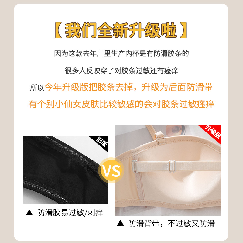 无肩带内衣女无钢圈夏季薄款聚拢防滑抹胸式裹大胸显小隐形文胸罩