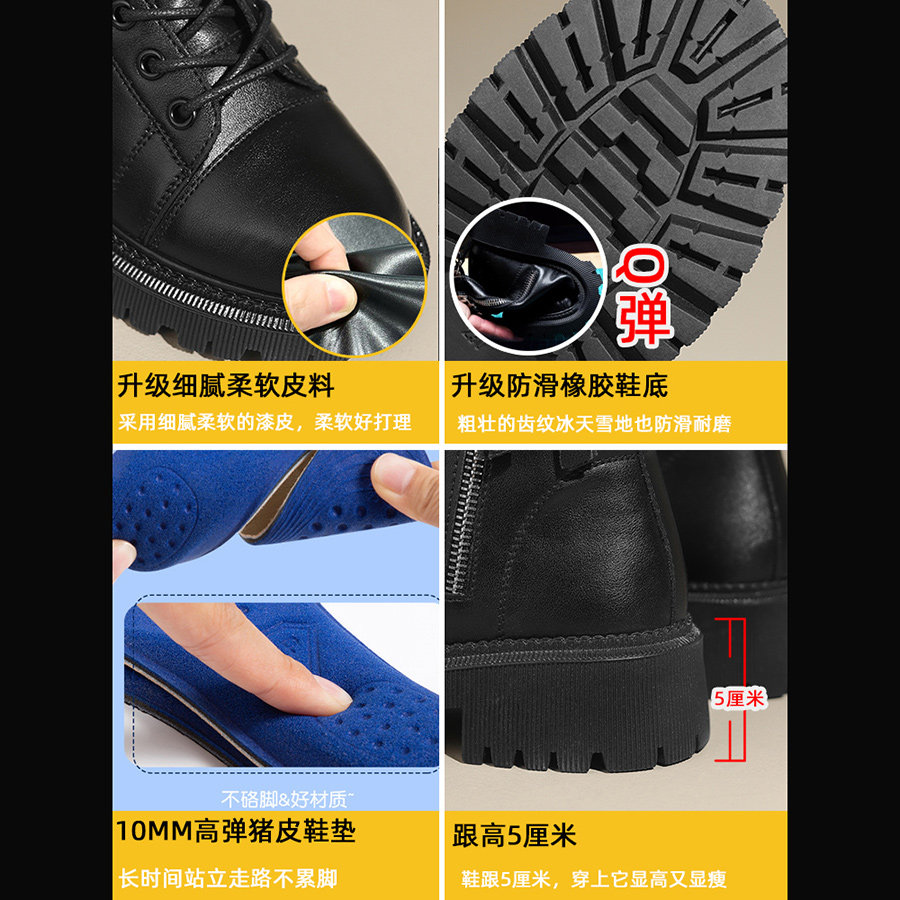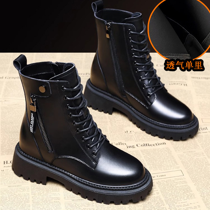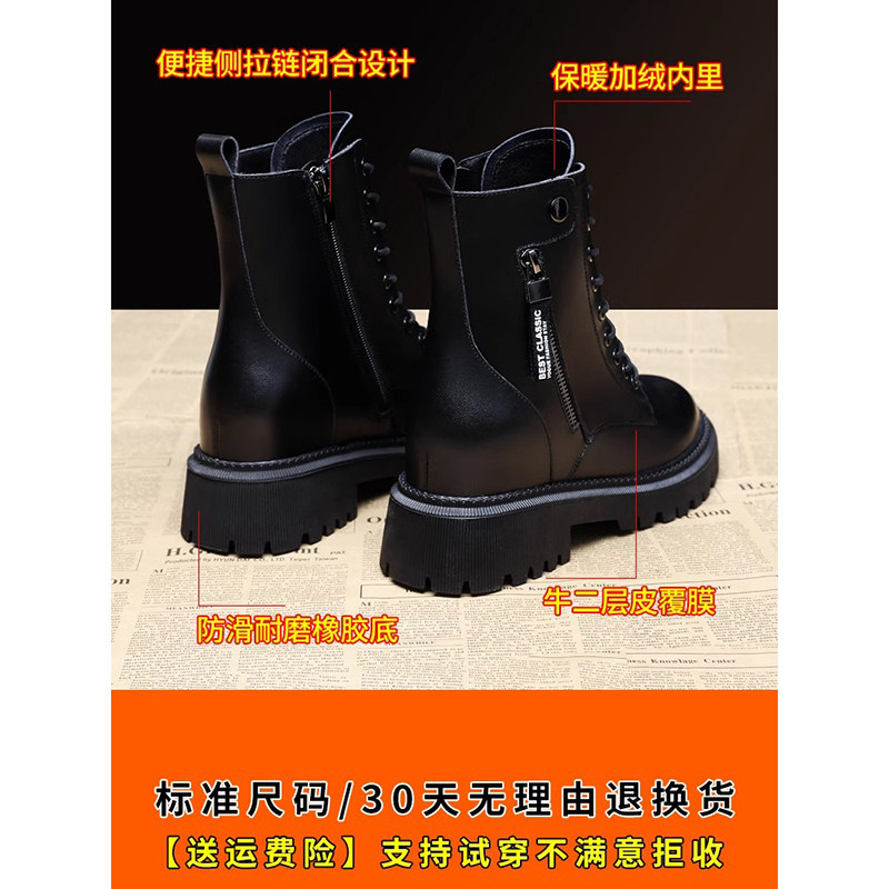 真皮马丁靴女靴子2025新款秋冬加绒爆款厚底今年流行的黑粗跟短靴