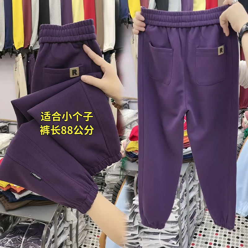 小个子冬季新款九分裤加绒休闲裤女高腰百搭运动裤束脚显瘦哈伦裤