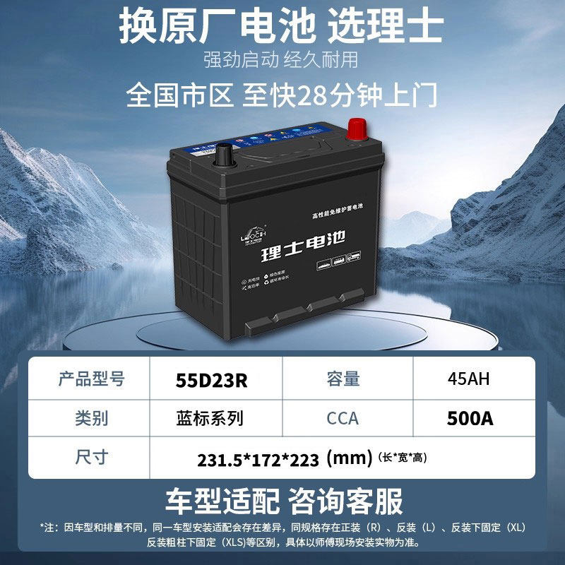 理士汽车电瓶蓄电池55D23R日产帕拉丁斯巴鲁长城哈弗H5原装55D23L