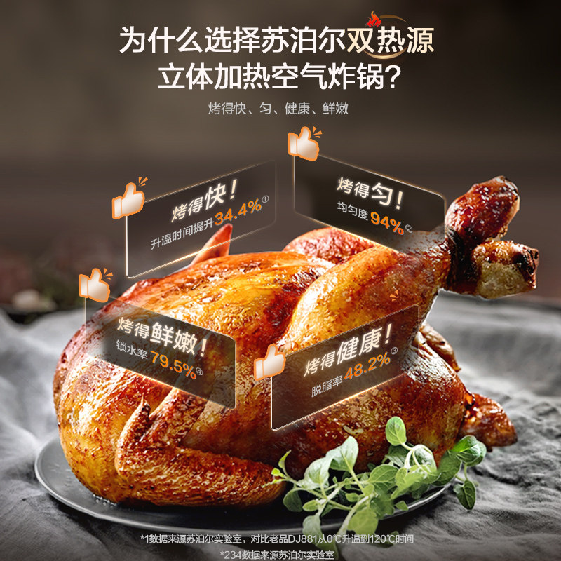 苏泊尔空气炸锅双热源家用6L大容量免翻面低音可视多功能蒸汽炸锅