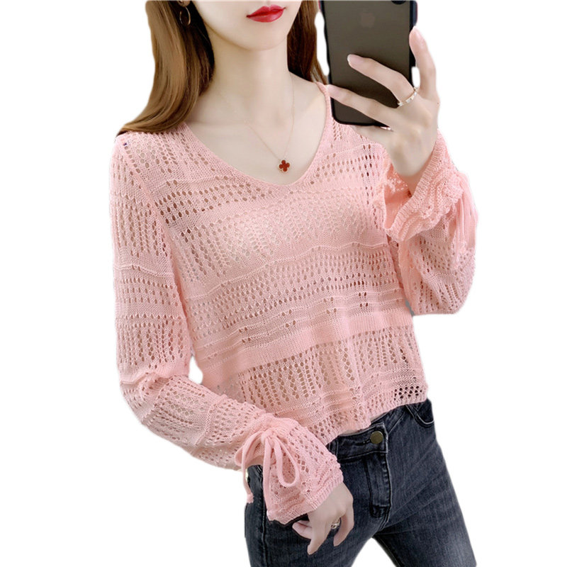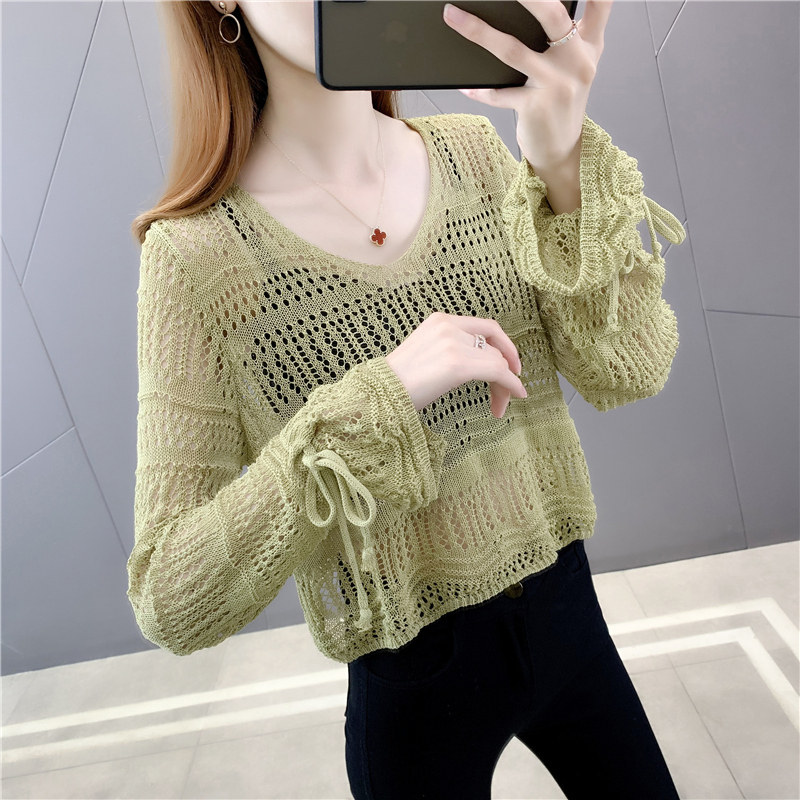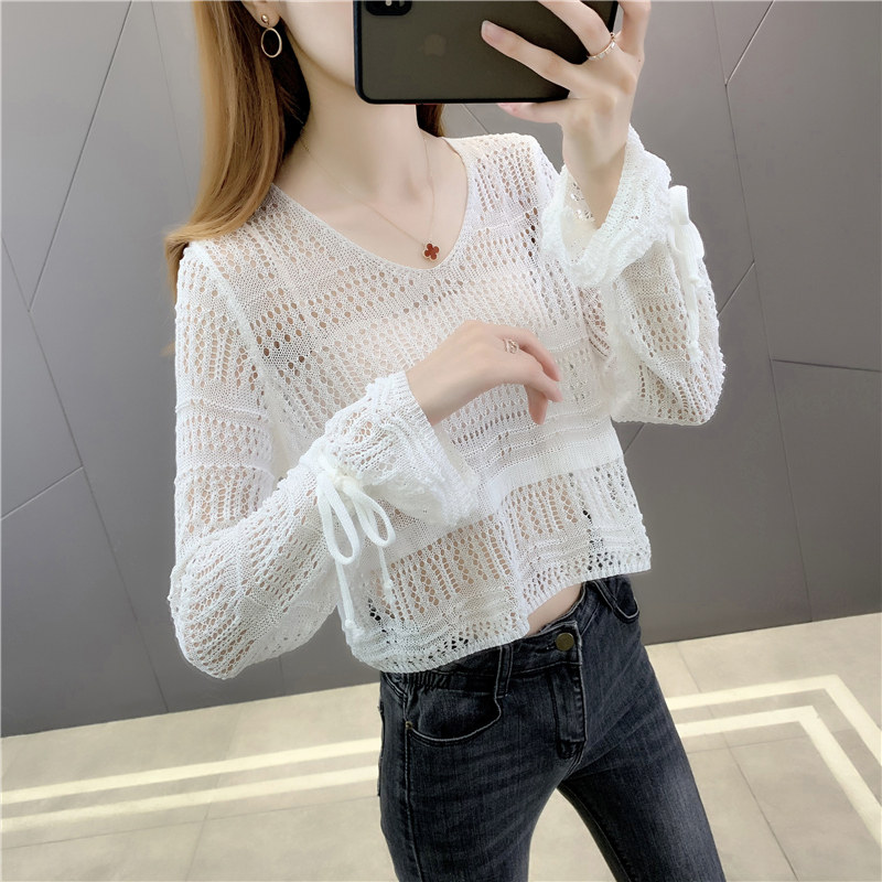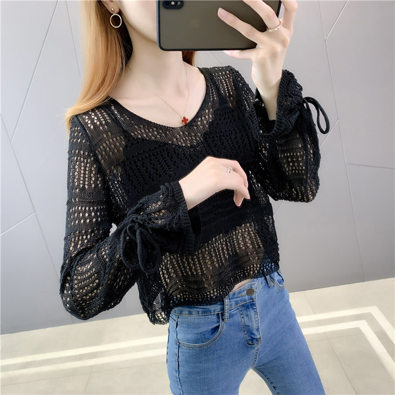 夏款韩版镂空t恤冰丝外搭防晒衣女士针织小衫薄款短款小外套上衣