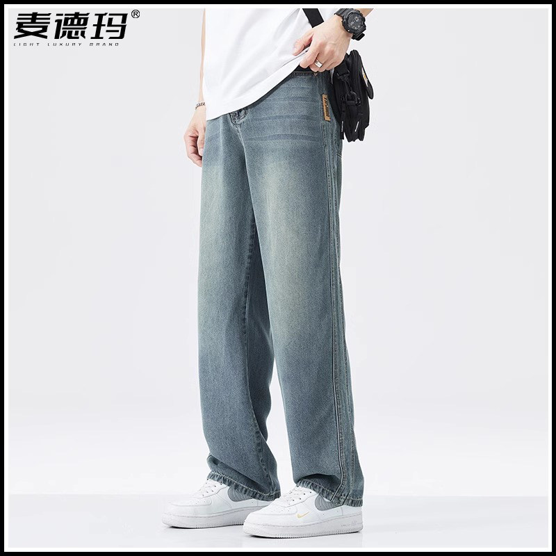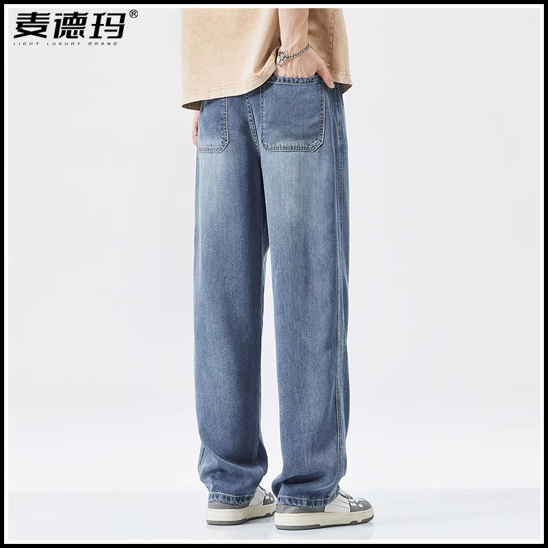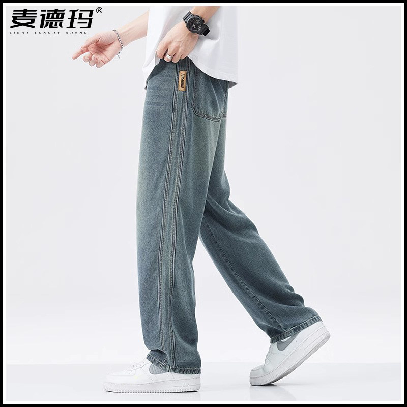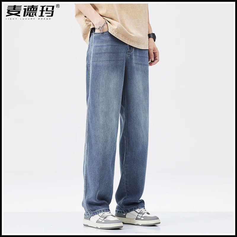 天丝超薄男士夏季牛仔裤2025新款宽松垂顺阔腿裤直筒休闲长裤子男