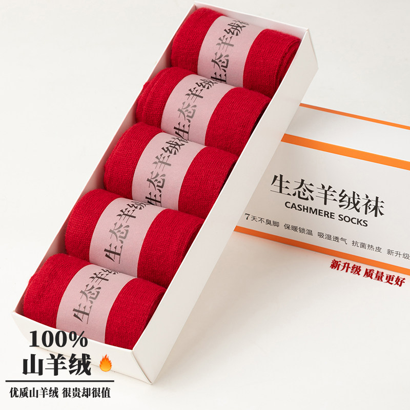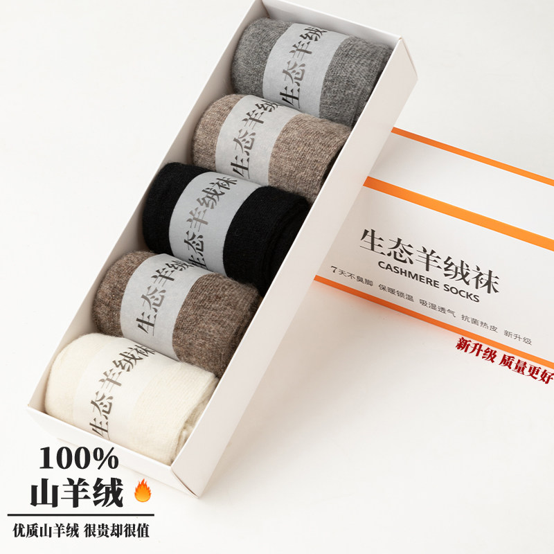 鄂尔多斯市100%纯羊绒袜子冬季男女原生态山羊绒中筒薄款羊毛袜子