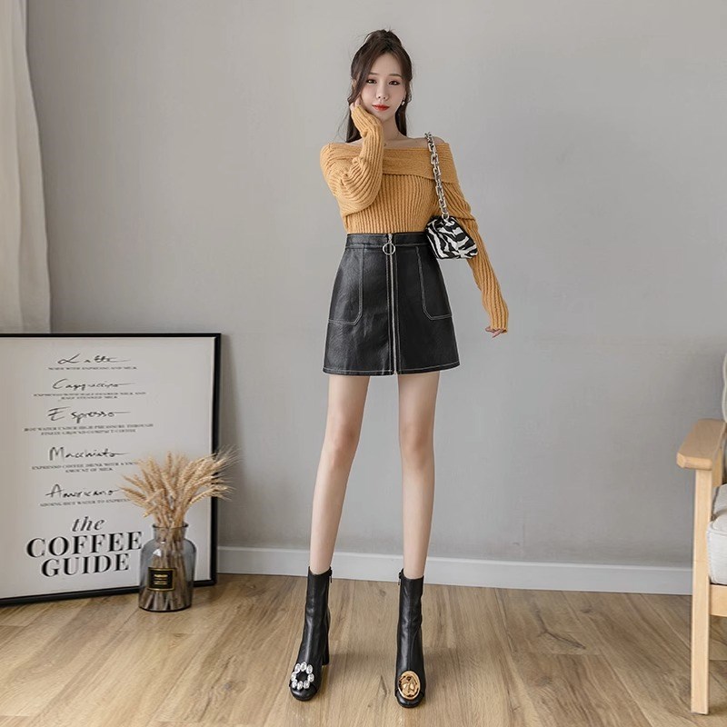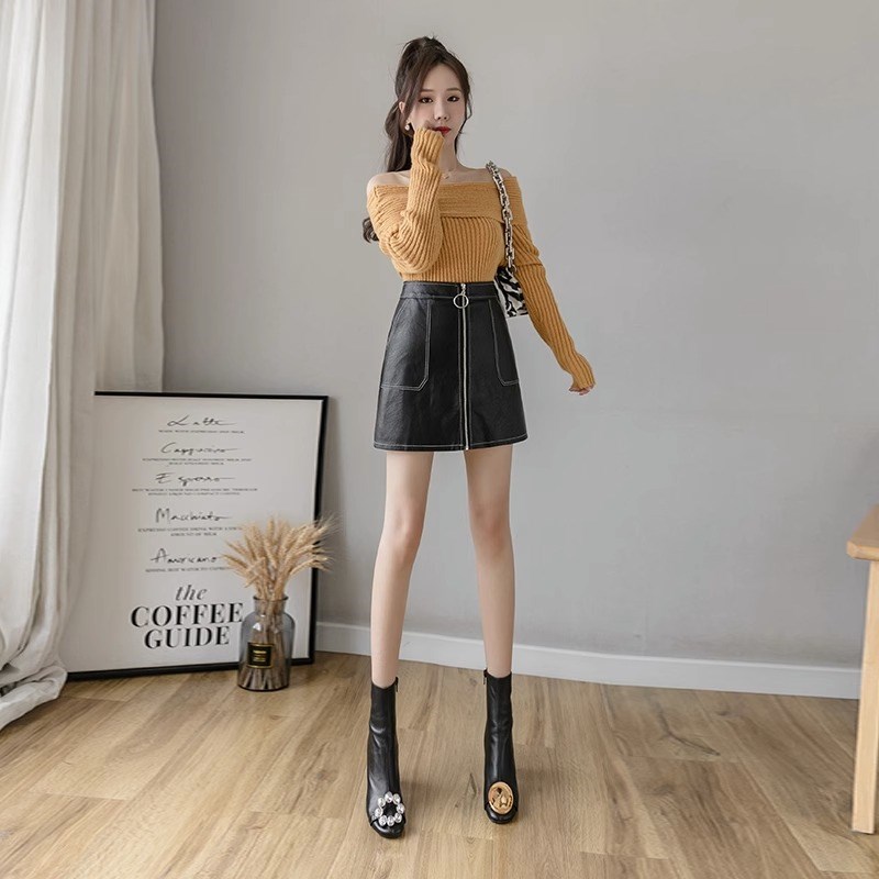 高腰显瘦拉链半身裙女春秋新款时尚气质超火a字包臀裙小皮裙短裙