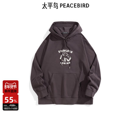 太平鸟男装 连帽卫衣秋季绛红色刺绣上衣潮流美式宽松卫衣