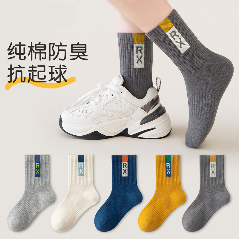 儿童男童袜子春秋季纯棉中筒袜青少年中大童无骨运动袜宝宝学生袜