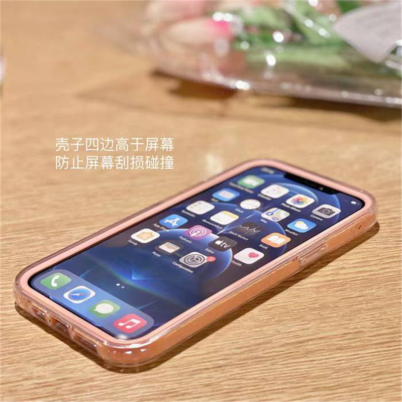 ins风少女粉色适用15苹果14手机壳iPhone13/12mini厚11promax边框xsmax三合一xr透明8p/7PLUS防摔6s/se3硅胶