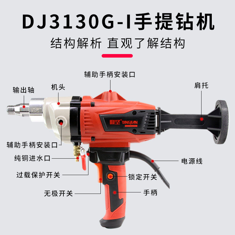 鼎坚水钻机无水封无铜管金刚石手持式空调钻孔干湿离合调速水磨机
