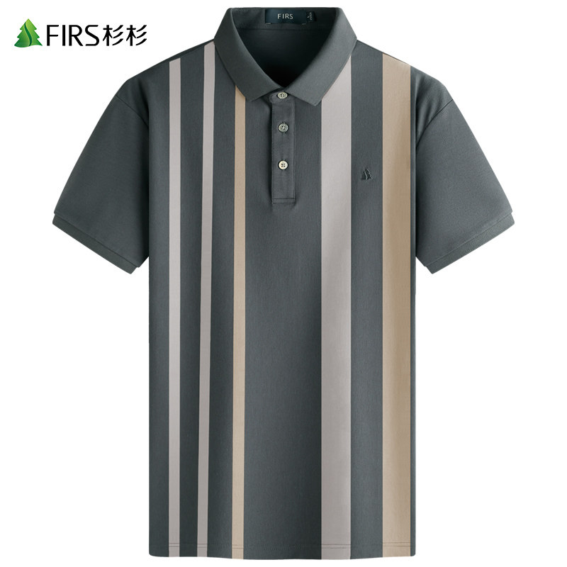 【桑蚕丝】杉杉翻领短袖T恤男2025夏季新款条纹亲肤凉感POLO衫