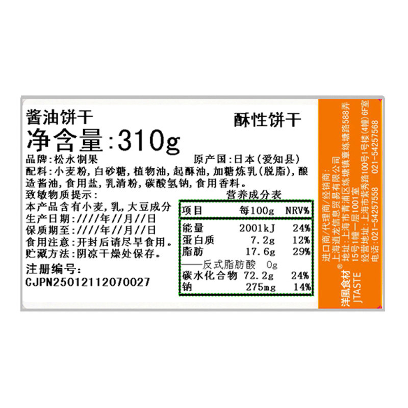 日本进口零食品松永酱油饼干310g开学休闲办公室小零食