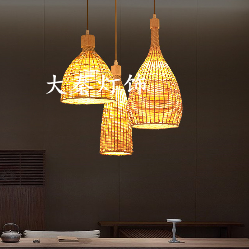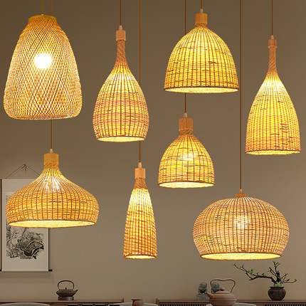 新中式竹艺竹编吊灯民宿茶室禅意餐厅日式侘寂风艺术编织创意灯具
