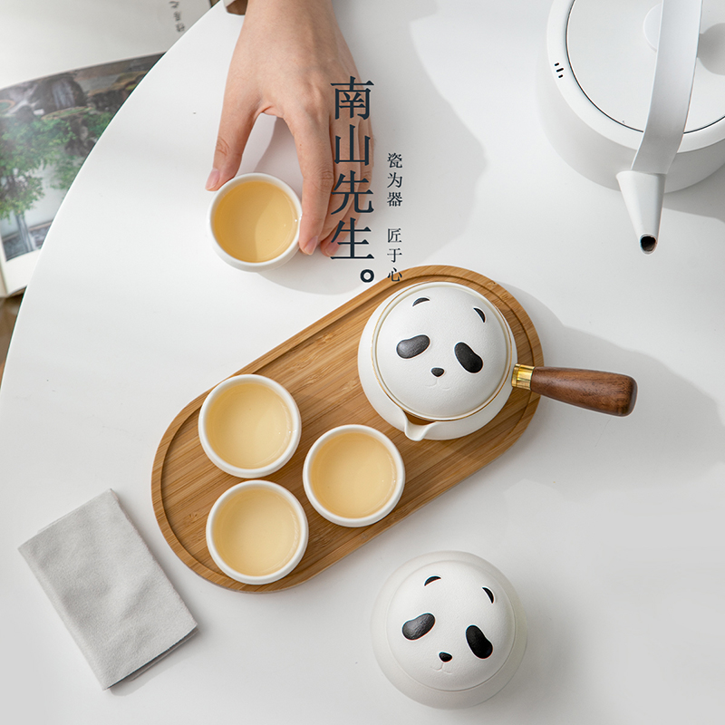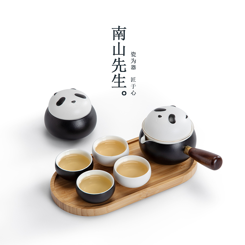 南山先生熊猫旅行茶具套装便携式一人陶瓷快客杯户外泡茶壶伴手礼