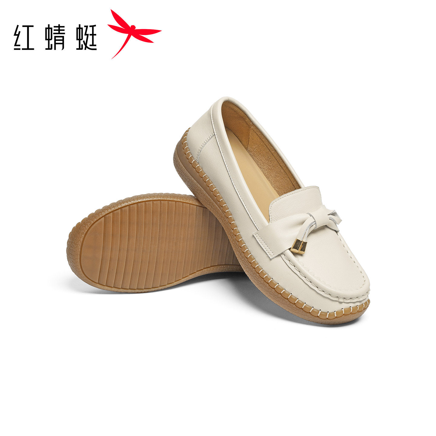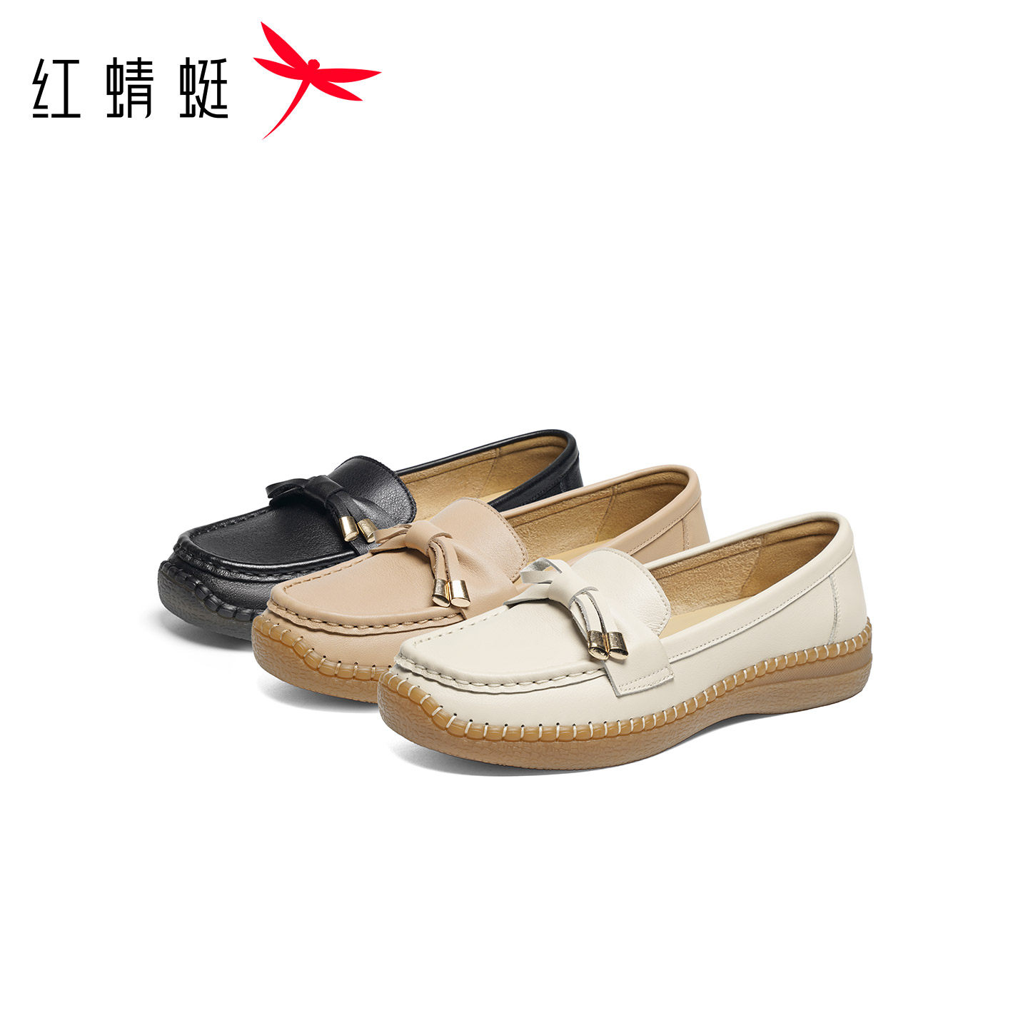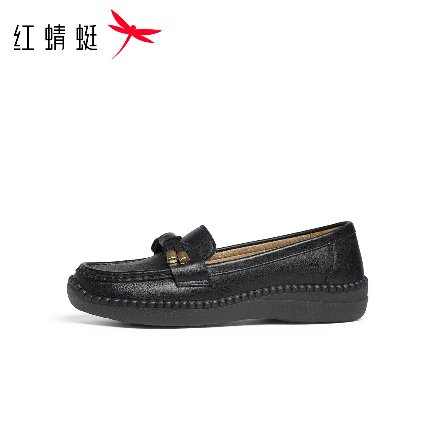 红蜻蜓妈妈皮鞋2026春季新款女鞋中老年鞋子舒适真皮软底平底单鞋