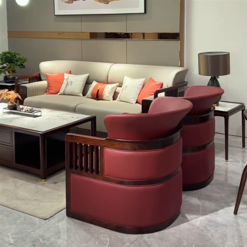 新中式实木沙发乌金木真皮沙发组合现代简约轻奢客厅高端别墅家具
