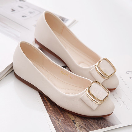 单鞋女平底鞋软皮2025新款春秋季浅口百搭妈妈鞋子软底舒适豆豆鞋
