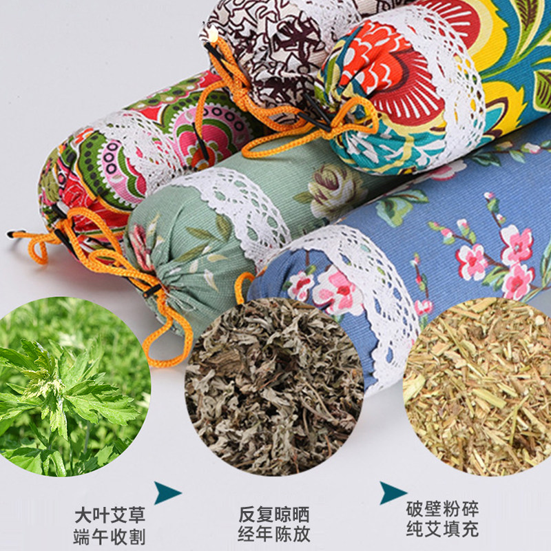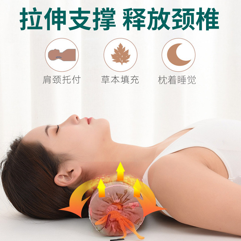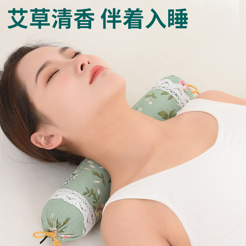 全艾草填充颈椎硬枕头艾草艾护颈圆形圆柱护颈枕成人绿色单人枕