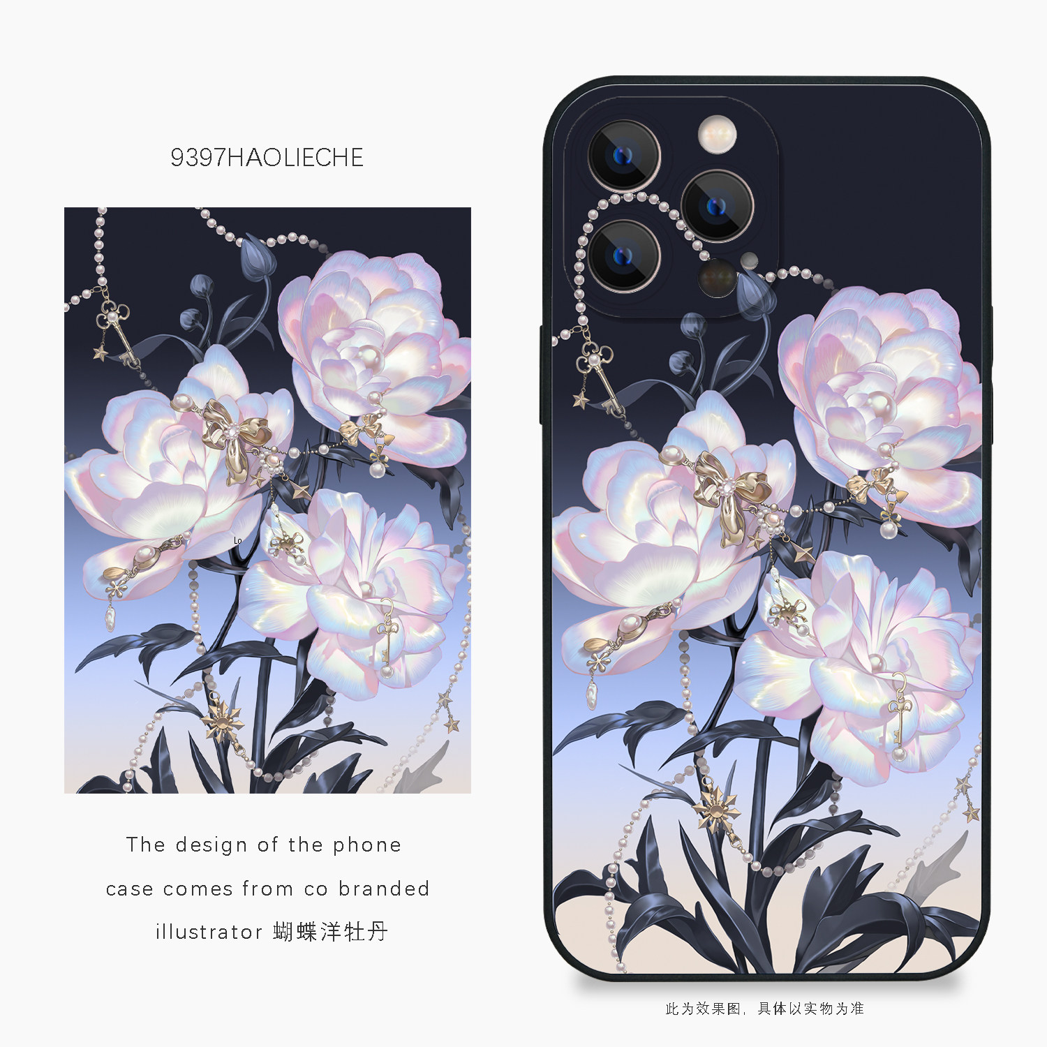 9397号列车木野春·花卉系列·蝴蝶洋牡丹自创插画手机壳适用于苹果17Promax华为p70promate小米17vivooppo