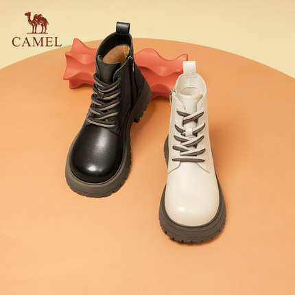 骆驼女鞋2025秋冬新款厚底骆驼马丁靴女加绒短靴增高白色靴子女