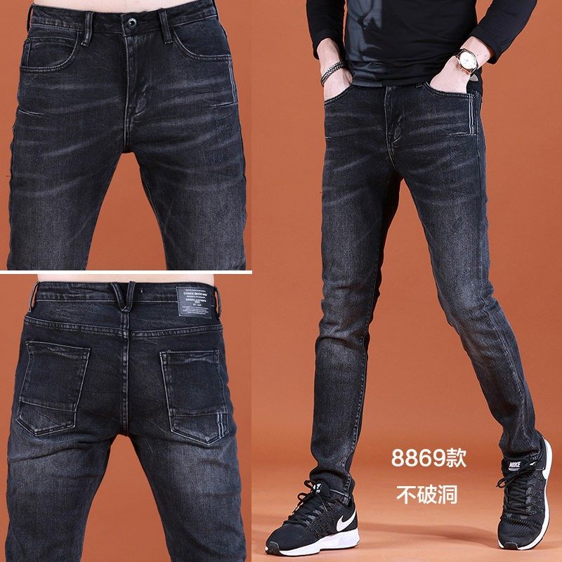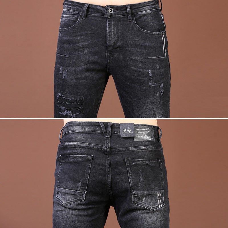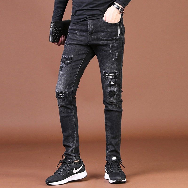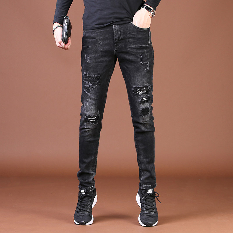 秋冬季黑色破洞牛仔裤男款2024新款潮牌修身小脚潮流痞帅男士裤子