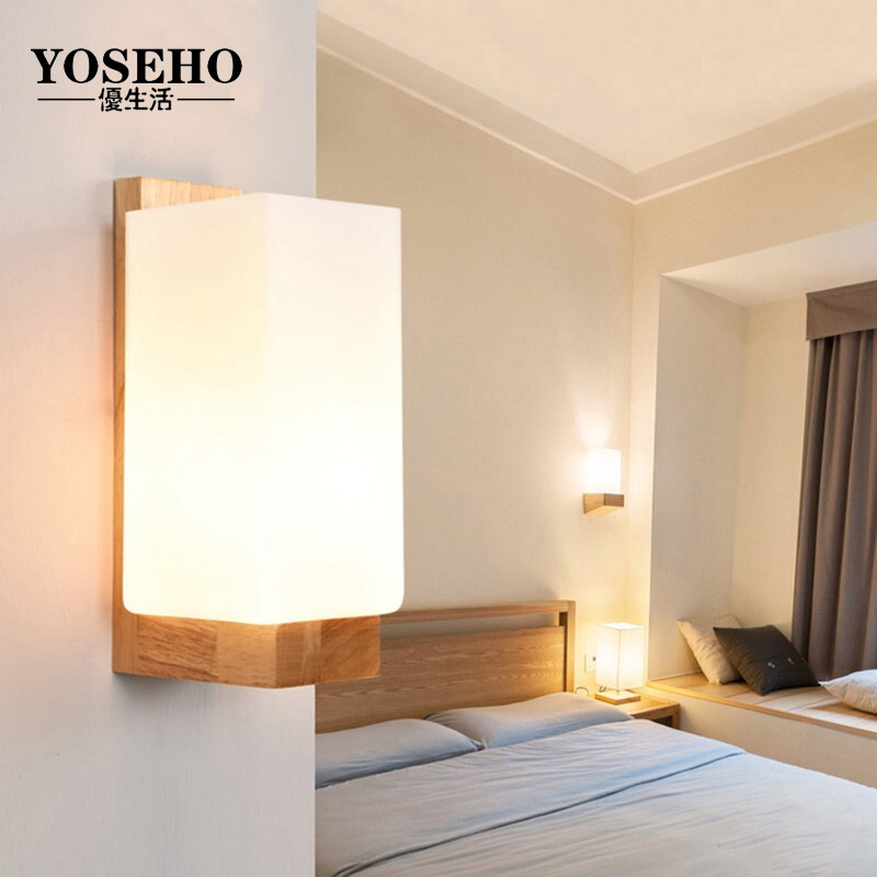 日式木艺床头壁灯卧室简约现代实木中式北欧创意客厅过道酒店灯具