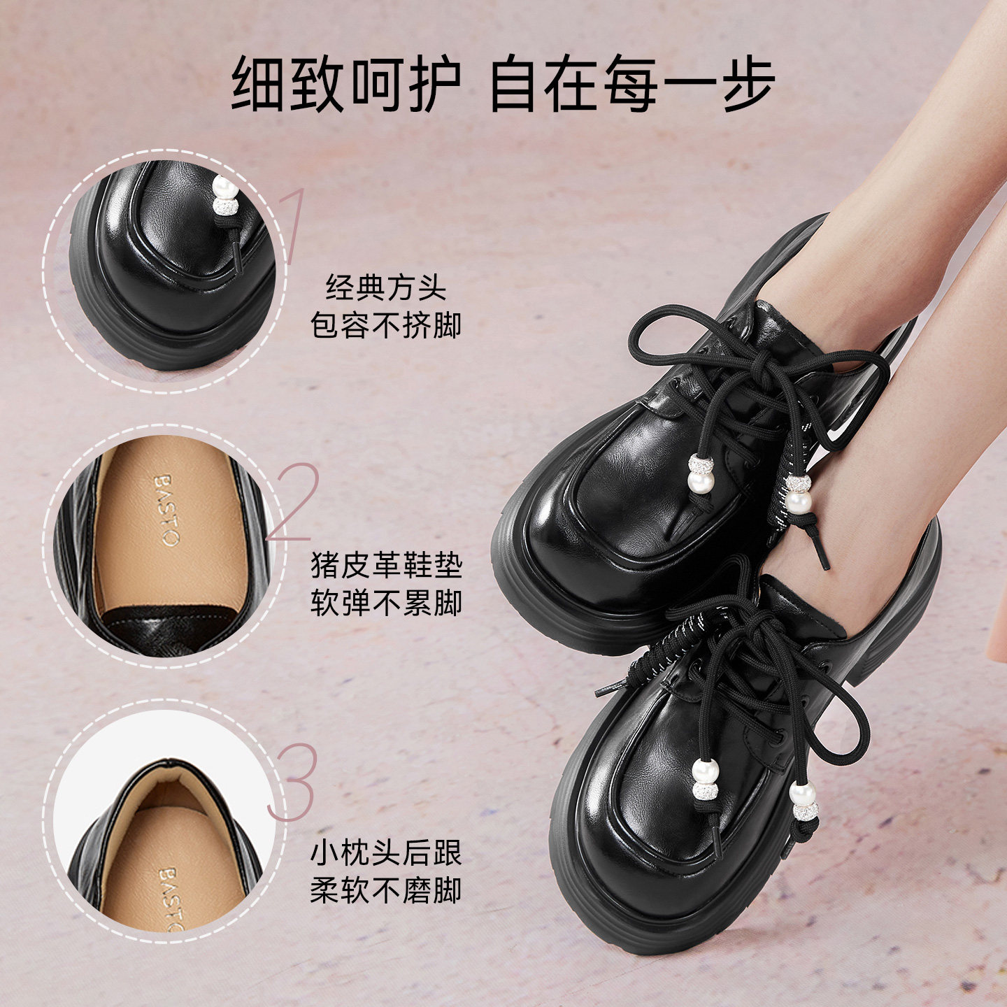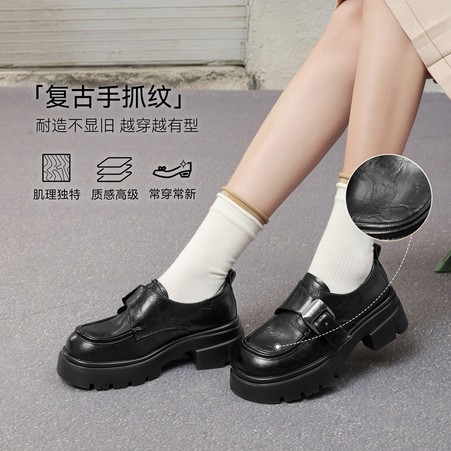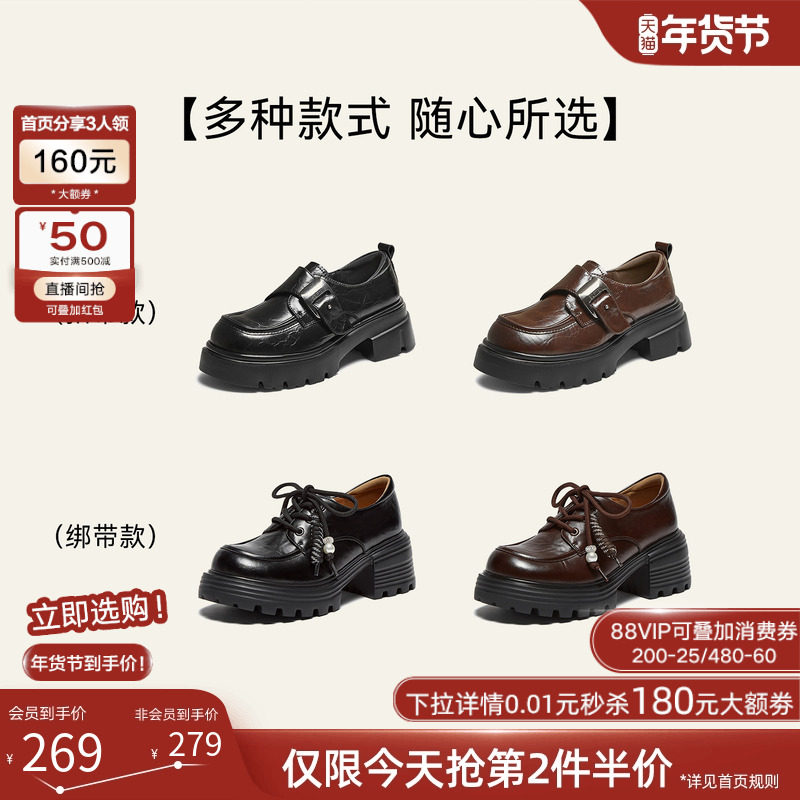 百思图25秋复古英伦牛津鞋厚底增高皮鞋粗跟女深口单鞋O9977CM5Z