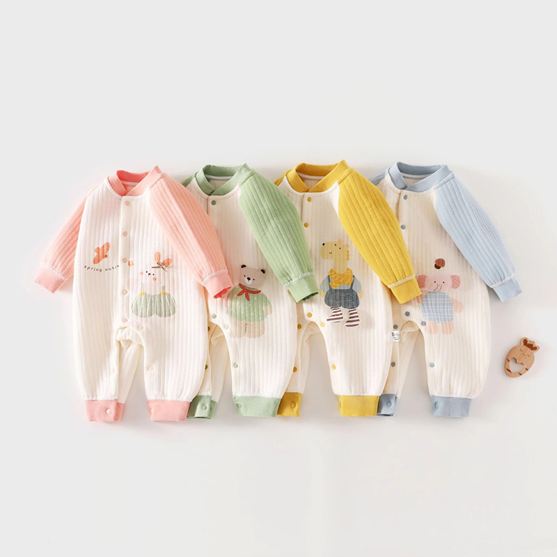 2件 婴儿保暖连体衣春秋季宝宝哈衣夹棉衣服新生儿加厚空气棉睡衣